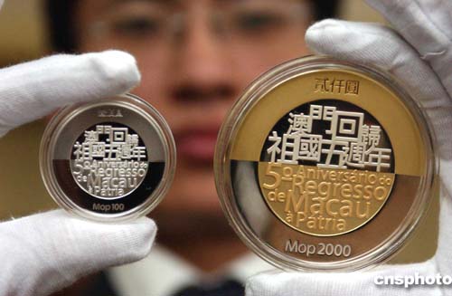 紀念幣面額為澳門元兩千元、一千元、五百元、二百元和一百元五種。全部由中國印鈔造幣總公司生產(chǎn),并在內地獨家負責銷售。首批紀念幣將在本月二十日分別在北京、上海、廣州、天津、深圳、西安、太原等城市上市銷售。