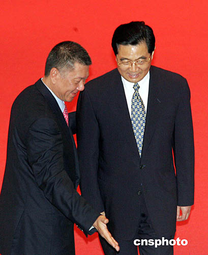 國家主席胡錦濤在澳門回歸五周年慶祝大會上發(fā)表重要講話后,何厚鏵請胡錦濤就座。