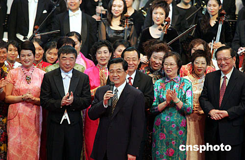 十二月二十日上午,國家主席胡錦濤在澳門文化中心觀看了慶;貧w五周年文藝演出后,上臺與演員們握手并表示感謝。作者:宗金柱