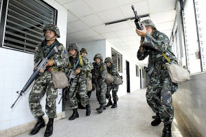整個(gè)演習(xí)分為兩個(gè)階段進(jìn)行。第一個(gè)階段是中級(jí)和高級(jí)軍官在指揮所里用電腦進(jìn)行戰(zhàn)爭(zhēng)模擬,完全是虛擬世界的真實(shí)戰(zhàn)爭(zhēng);第二個(gè)階段則是實(shí)兵演習(xí),主要是演練特種部隊(duì)如何應(yīng)對(duì)滲入后方的敵人。