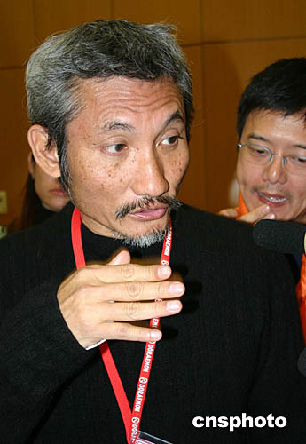 集合京劇、昆曲、臺灣原住民樂舞的跨年大型歌舞戲曲《暴風(fēng)雨》,將于十二月三十日至二零零五年在臺北連演四天。該劇取材自莎士比亞戲劇,由香港著名導(dǎo)演徐克(左一)、臺灣“反派大師”吳興國(左二)、獲奧斯卡金像獎(jiǎng)的臺灣造型師葉錦添聯(lián)袂奉獻(xiàn)。圖為二十一日該劇媒體見面會的情景。