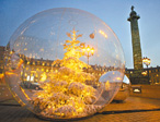 當(dāng)?shù)氐氖フQ裝置中,最矚目首推Vendome廣場(chǎng)上一個(gè)個(gè)巨型圣誕泡泡玻璃球,不但每個(gè)泡內(nèi)也藏有一株圣誕樹(shù),透過(guò)光折射,似將整個(gè)廣場(chǎng)藏于泡內(nèi),很有童話(huà)色彩﹗原來(lái)這些玻璃球是紀(jì)念瑞士在巴黎推廣旅游一百周年而特地設(shè)置的。