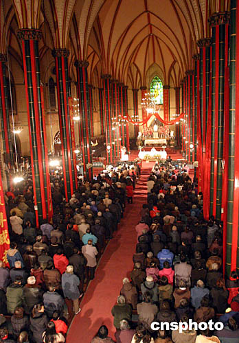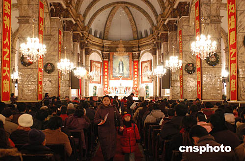 十二月二十四日是圣誕平安夜,北京眾多天主教信眾來(lái)到天主教教堂參加圣誕彌撒。