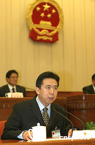 受委員長會議委托,全國人大常委會法制工作委員會主任胡康生就委員長會議提請審議的反分裂國家法草案作了說明。