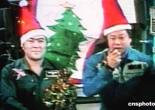 據(jù)十二月二十五日美國CNN報道,正在國際空間站的歷史上第一位美籍華裔站長焦立中(右),與俄羅斯宇航員沙里科夫共同從太空向地球人說,我們祝你圣誕快樂,新年愉快。(電視畫面)作者:賈國榮