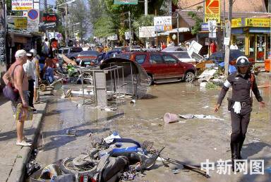 26日印尼蘇門達臘島北部發(fā)生的強烈地震在東南亞、南亞海域引發(fā)海嘯。高達近10米的巨浪襲擊了印尼、斯里蘭卡、泰國等國沿海地區(qū)。圖為泰國普吉島遭海嘯襲擊,現(xiàn)場一片狼籍。