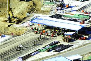 記者隨后在附近一幢可以俯瞰“鳥(niǎo)巢”全貌的高層建筑樓頂上看到,四五臺(tái)挖掘機(jī)正在“鳥(niǎo)巢”工地內(nèi)舞動(dòng)著大鏟,將一堆堆土方裝進(jìn)大貨車的車廂。幾十個(gè)工人正在焊接用來(lái)打樁的鋼筋框架,工地內(nèi)一排排鉆機(jī)已經(jīng)就位,施工單位寫(xiě)有“青年突擊隊(duì)”字樣的隊(duì)旗迎風(fēng)招展。據(jù)了解,目前“鳥(niǎo)巢”工地已有五六百工人進(jìn)駐。