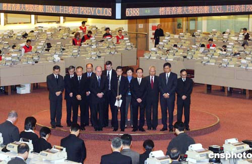 香港聯(lián)合交易所在早上開(kāi)市前為南亞大地震和海嘯災(zāi)難中的死者默哀1分鐘,并在大堂內(nèi)設(shè)置捐款箱,籌款賑災(zāi)。作者:洪少葵