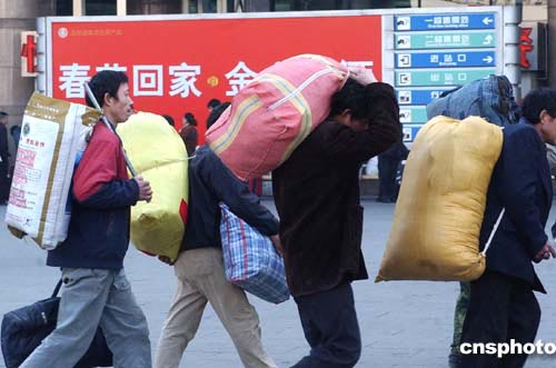 離中國(guó)農(nóng)歷新年春節(jié)尚有一個(gè)多月,北京西客站已出現(xiàn)“民工返鄉(xiāng)潮”。據(jù)交通部門的預(yù)測(cè),二○○五年春運(yùn)期間鐵路方面旅客量將達(dá)一點(diǎn)四五億人次,同比增長(zhǎng)百分之三點(diǎn)五。作者:韓藝冰
