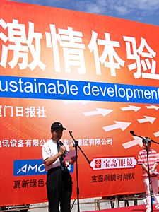 在第三十六屆世界電信日即將來臨之際,中國電信寬帶用戶突破一千萬,成為中國寬帶業(yè)務(wù)眾多服務(wù)提供商中首個突破千萬用戶的運營商。圖為廈門電信公司總經(jīng)理陳揚忠宣布啟動“激情體驗”系列慶;顒印W髡撸簵罘