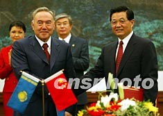 會談后,兩國元首出席了兩國政府關(guān)于成立中哈合作委員會的協(xié)定等文件的簽字儀式。