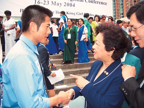 中新網(wǎng)5月18日電 據(jù)香港大公報(bào)報(bào)道,作為今年的女童軍國際親善大使,郭富城昨日應(yīng)邀出席女童軍“第八屆亞洲太平洋區(qū)會議”,同場的還有特首夫人董趙洪娉女士;顒悠陂g,“城城”和董太不時(shí)交談,原來董太想邀請他出席一些公益活動,希望他可以幫手。