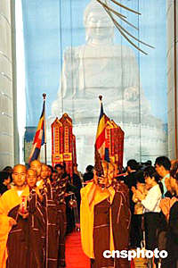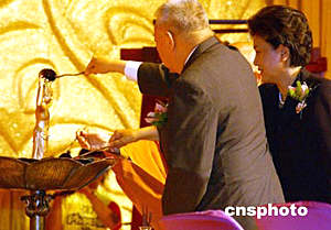 全國(guó)政協(xié)副主席、中共中央統(tǒng)戰(zhàn)部部長(zhǎng)劉延?xùn)|、香港特首董建華等,五月二十六日出席香港佛教暨各界迎請(qǐng)佛指舍利瞻禮祈福大會(huì)浴佛典禮。 作者:錢興強(qiáng)
