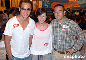 陳豪、陳慧珊、林保怡(左起)5月28日在香港出席無(wú)線(xiàn)電視《雅典奧運(yùn)·上下一心共創(chuàng)新里程》誓師大會(huì)。作者:鄧慶樂(lè)