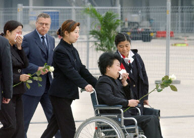 中國駐法國大使趙進(jìn)軍、法國裝備、交通、住房、旅游和海事部部長吉爾·戴·羅比安和戴高樂機(jī)場公司總裁皮埃爾·格拉夫以及遇難者家屬等近800人參加了哀悼儀式。
