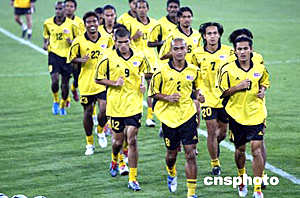 六月八日,馬來西亞足球隊在天津泰達足球場進行適應場地訓練。二零零六年世界杯足球賽亞洲區(qū)預賽中國隊對馬來西亞隊的比賽將于六月九日晚在這里舉行。中新社記者:毛建軍