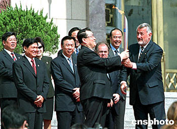 中新網6月9日電 今天上午9時,2004年雅典奧運會火炬北京傳遞活動在北京正式開始。活動起點設在人民大會堂東門外廣場,傳遞途中設立148個接力點,終點設在頤和園。