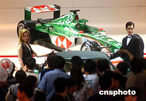 六月十日,二零零四北京國際車展在北京中國國際展覽中心正式開幕,由于中國將于年內(nèi)舉辦F1賽事,一些外國廠商紛紛推出自己的方程式賽車吸引中國觀眾。中新社記者:武仲林