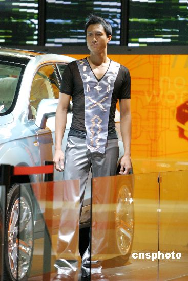 6月10日,在北京國際展覽中心和農(nóng)展館同時舉行的2004年北京國際汽車展覽會規(guī)模超過歷屆車展會,各參展商力邀模特助陣,以博觀眾青睞,為車展助興的男模也成為一道風景線。作者:魯谷