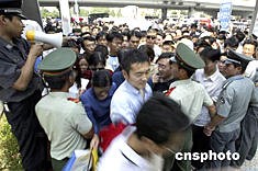 6月12日,2004年北京國際汽車展迎來周末參觀高峰,大批警察、武警、保安在現(xiàn)場維持秩序,確保展會安全、有序進行。中新社記者:盛佳鵬