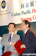 香港國泰航空于6月14日與香港賽馬會簽訂一份為期三年的合約,贊助香港賽馬會舉辦 “香港國際賽事”,為彰顯這項國際賽事對香港旅游業(yè)發(fā)展的重要性,香港旅游發(fā)展局總干事臧明華女士,特別出席簽約儀式。中新社記者:趙振清