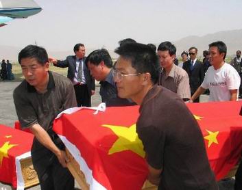 遺體由阿富汗的禮兵抬棺上專(zhuān)機(jī),并由阿富汗政府的公共工程部的副部長(zhǎng)和外交部的一名司長(zhǎng)和中鐵建派出的兩人護(hù)送靈柩回國(guó)。