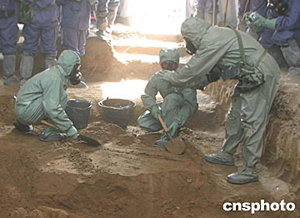 由中日雙方共同組成的專家團(tuán)從六月十七日開始在黑龍江省齊齊哈爾市昂昂溪區(qū)榆樹屯鎮(zhèn)頭站村進(jìn)行日軍遺棄化武的挖掘回收工作。截至十八日,這里已發(fā)現(xiàn)三種型號(hào)的化學(xué)毒氣彈。有關(guān)專家稱,經(jīng)過(guò)探測(cè)分析認(rèn)為,這里埋藏的炮彈可能在五百枚以上。作者:郭亮