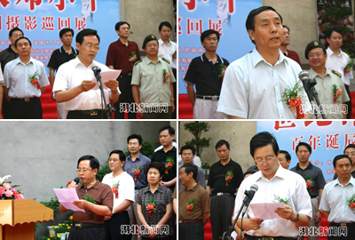 中國新聞社副總編輯田惠明、中共宜昌市委副書記文成國、市委常委、宣傳部長趙舉海、市人大副主任肖道根、市政府副市長廖達鳳、市政協(xié)主席李泉、解放軍宜昌市軍分區(qū)司令員張建國、三峽大學(xué)、武警二支隊負責人的代表、中國新聞社湖北分社社長章敦華等出席首展儀式并且為首展剪彩。首展儀式由趙舉海主持,文成國、田惠明和各界代表先后在儀式上發(fā)表講話。