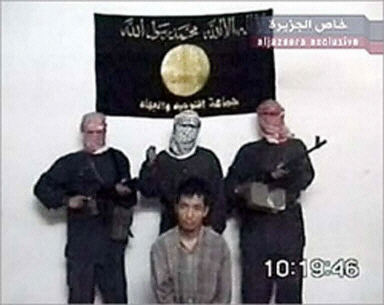 這些宣稱是來(lái)自約旦抵抗團(tuán)體阿布·穆薩卜·扎卡維所屬集團(tuán)的劫持者們表示,如果在24小時(shí)內(nèi)不接受從伊拉克撤軍的要求,則將把被確認(rèn)為金善日(音譯)的韓國(guó)人的人頭送到韓國(guó)。