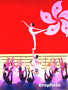其他精彩節(jié)目還包括大型舞蹈“海燕”、“祝福”和“祖國(guó)請(qǐng)檢閱”,大型雜技“東方的天鵝”和“收獲”,精彩絕倫的演出令人目不暇給,引來(lái)頻頻喝彩。解放軍駐香港部隊(duì)儀仗隊(duì)一百五十名官兵,也難得親臨現(xiàn)場(chǎng)作精彩表演,齊整的隊(duì)列令觀眾嘆為觀止。