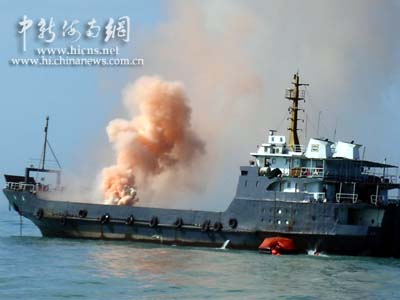 上午九點(diǎn)正,搜救演習(xí)指揮船粵海鐵上空升起三顆耀眼的信號(hào)彈,預(yù)先放置在南海指定海域“海難遇險(xiǎn)船”“南海號(hào)”甲板上冒出紅色和白色兩種煙霧,駐守在南海附近的中國(guó)搜救隊(duì)伍得到求救信號(hào):“海難”發(fā)生了。