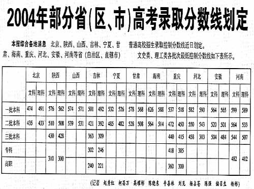 中新網(wǎng)6月26日電 據(jù)《中國教育報(bào)》綜合各地消息:北京、陜西、山西、吉林、寧夏、甘肅、海南、重慶、河北、安徽、河南等省(自治區(qū)、直轄市)普通高校招生錄取控制分?jǐn)?shù)線近日劃定。