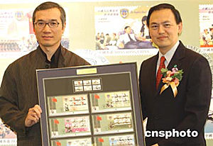 其后,蔣任宏署長(zhǎng)向王玉仁少將及郵票設(shè)計(jì)師何志仁致送鑲有這套特別郵票及首日封的框架,以作留念。