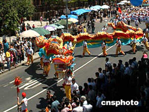 二零零四年七月四日是美國獨(dú)立二百二十八周年。七月三日中午,數(shù)千華人聚集在紐約曼哈頓中國城舉行游行活動,慶祝美國國慶。作者:陳建