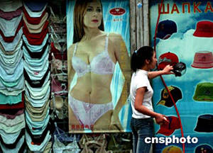 北京建國門外如今已形成多條外貿(mào)出口服飾用品街,今年夏季女性內(nèi)衣布滿沿街店鋪,因其物美價廉而熱銷東歐國家。中新社記者:賈國榮