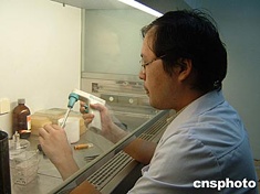 七月七日,武漢同濟(jì)醫(yī)院宣布:該院的科研專家研究發(fā)現(xiàn)一種能“激活”胰島素受體下游信號(hào),增加胰島素敏感的基因能治療糠尿病。圖為研究人員在實(shí)驗(yàn)室調(diào)試基因培養(yǎng)液。作者:艾啟平