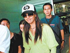 中新網(wǎng)7月8日電 據(jù)成都商報報道,《驚天傳奇》剛開拍,就有漫天謠言說,因為成龍不滿韓國明星金喜善耍大牌,已將她剔除出劇組,鐘欣桐將取代金喜善擔(dān)當(dāng)?shù)谝慌鹘恰5蛉战鹣采粕衩噩F(xiàn)身上海浦東機場,并于昨晚前往劇組探班,自然粉碎傳言,據(jù)了解,金喜善此次出演女主角的身價是100萬美元。