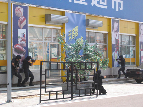 中新網(wǎng)7月11日電 隨著一聲號(hào)令,北京警察學(xué)院的操練場(chǎng)上,警車呼嘯而出,警燈閃爍,場(chǎng)面驚心動(dòng)魄。一場(chǎng)帶有實(shí)戰(zhàn)性質(zhì)的,以處置突發(fā)事件和反恐怖犯罪活動(dòng)為主題的京城特警反恐防暴演習(xí)拉開(kāi)戰(zhàn)幕。這是日前發(fā)生在由北京市公安局組織的,旨在以練促戰(zhàn)的北京警方反恐防暴演習(xí)現(xiàn)場(chǎng)的一幕。