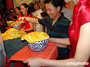 七月十一日是中國古代航海家鄭和首次下西洋五百九十九年紀(jì)念日,作為中國政府紀(jì)念鄭和首次下西洋六百周年系列紀(jì)念活動(dòng)唯一的文藝作品,由中國中央電視臺(tái)與江蘇廣播電視總臺(tái)聯(lián)合攝制的大型記錄片《一四零五--鄭和下西洋》當(dāng)日在南京獅子山閱江樓開拍,江蘇省官員將從鄭和龍江寶船廠遺址取來的明代文化層土贈(zèng)送給攝制組。南京是鄭和長期生活的地方,獅子山更是當(dāng)年鄭和首下西洋航線的第一個(gè)航標(biāo)。作者:王曉紅
