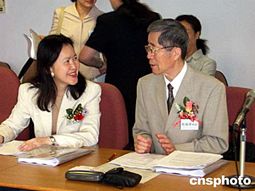 香港樹仁學(xué)院和北京大學(xué)14日開始,一連兩日在樹仁校舍合辦“CEPA與兩地經(jīng)濟關(guān)系”研討會。圖為香港特區(qū)署理經(jīng)濟顧問矛以麗(圖左)及北京大學(xué)國際經(jīng)濟研究所前所長張德修在會上交談。作者:黎金良