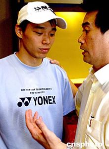 十四日,中國國家體育總局在湖南益陽市宣布中國羽毛球隊參加雅典奧運(yùn)會的五個單項參賽隊員名單和替補(bǔ)隊員名單,上屆奧運(yùn)會羽毛球銅牌得主、世界冠軍夏煊(xuan火加宣)澤列為替補(bǔ)隊員,可能無緣參加這一體育盛會。圖為國家體育總局乒羽中心主任劉鳳巖與夏煊(xuan火加宣)澤在一起。中新社記者:宋吉河