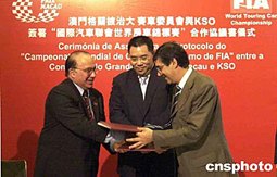 澳門格蘭披治大賽車委員會(huì),十五日在澳門舉行記者招待會(huì)宣布:2005年的東望洋房車賽將成為“國(guó)際汽車聯(lián)會(huì)世界房車錦標(biāo)賽”(FIA WTCC)的壓軸大戲。作者:梁永強(qiáng)