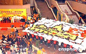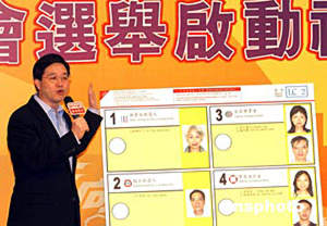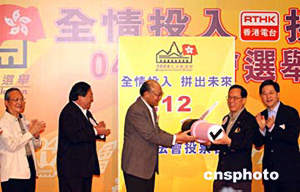 政務司司長曾蔭權(quán) 、政制事務局局長林瑞麟、民政事務局局長何志平、選舉管理委員會主席胡國興大法官及立法會議員、區(qū)議會正、副主席、選舉大使等出席典禮。  2004年香港立法會選舉開幕典禮17日在文化中心大堂舉行﹐政制事務局局長林瑞麟介紹選票。