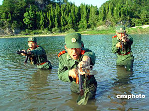 7月18日,浙江省仙居縣武警官兵頂著烈日,冒著酷暑進(jìn)行水上高難項(xiàng)目訓(xùn)練。為適應(yīng)水上戰(zhàn)斗能力,仙居縣武警官兵頂著烈日,開始進(jìn)行為期15天的水上訓(xùn)練。華文武 攝