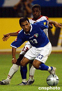 第二場比賽科威特戰(zhàn)阿聯(lián)酋。科隊隊長巴沙爾在第24分鐘先拔頭籌并在第39分鐘制造點球,穆特瓦一蹴而就擴大比分。上半場結(jié)束前,阿聯(lián)酋后衛(wèi)賽義德烏龍球送贈大禮。