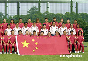 二○○四年七月二十三日,在上海備戰(zhàn)雅典奧運(yùn)的中國(guó)女子國(guó)家足球隊(duì)舉行賽前媒體見面會(huì),并拍攝全家福照片為出征奧運(yùn)留念。作者:湯彥俊
