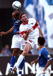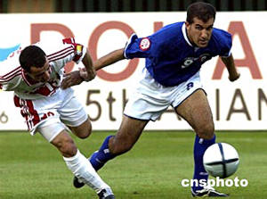二○○四年七月二十三日,亞洲杯B組比賽在濟南山東省體育中心重燃戰(zhàn)火,由業(yè)余球員組成的約旦隊迎戰(zhàn)目前小組排名第一的科威特隊。中新社記者:武仲林
