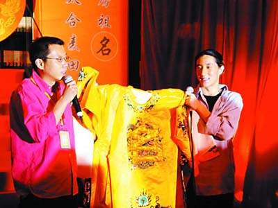 中新網(wǎng)7月24日電 成龍兒子房祖名昨日正式簽約北京太合麥田公司,拉開(kāi)了其全面進(jìn)軍內(nèi)地市場(chǎng)的序幕。在昨天簽約儀式,唱片公司負(fù)責(zé)人送上龍袍作為見(jiàn)面禮,但害羞的房祖名卻不敢當(dāng)眾穿上。