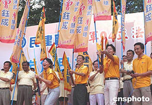 中新社香港七月二十五日電 被此間輿論公認為香港三大政黨之一的民建聯(lián)今天表示,若要實現(xiàn)特區(qū)行政長官和立法會在二O一二年“雙普選”,需要滿足四個條件。民建聯(lián)下午舉行誓師大會,場面熱烈,再度喊響其參選口號──“穩(wěn)定為民主,和諧建未來。”民建聯(lián)主席馬力自信“會爭取到越來越多市民的支持”。
