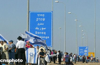 示威活動從25日下午5時開始,持續(xù)兩個小時,人鏈由加沙一個殖民區(qū)至耶路撒冷的舊城。組織者一共租用了800輛大巴士,將示威者送向沿線不同的地點。